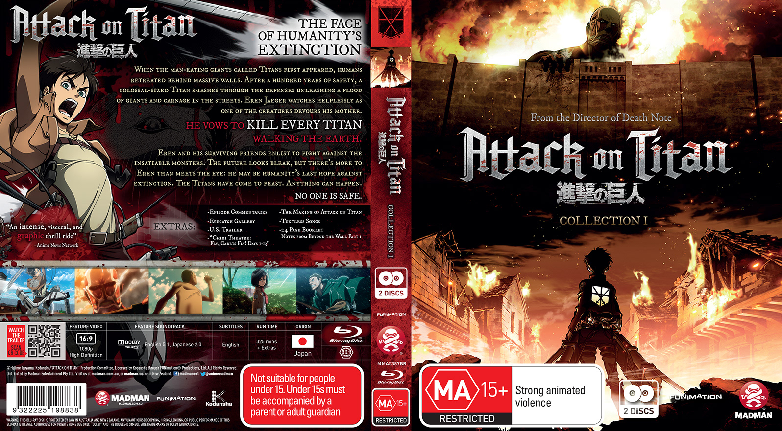 I designed the collector’s edition packaging for Attack on Titan – Season 1 Collection 1, Madman’s first premium box sets for the franchise. The goal was to deliver a high-impact physical product tailored specifically for the ANZ market while distinguishing it from international versions. Including metal key chains (licensor supplied), collector pins (licensor supplied), and an art/info booklet that was redesigned and reformatted based on the USA release.